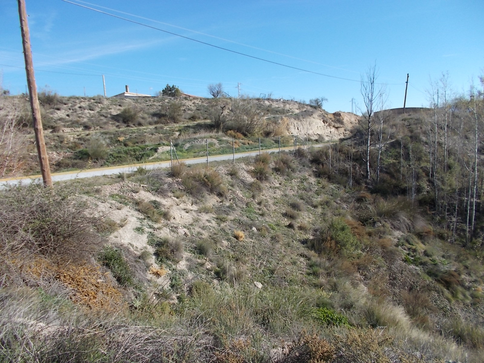 ![]() | Trackside post indicating the position of the water pipe between Lake Negratín and Almanzora. CNA = Conexión Negratín Almanzora. This water irrigates the Almanzora Valley. | See map. |